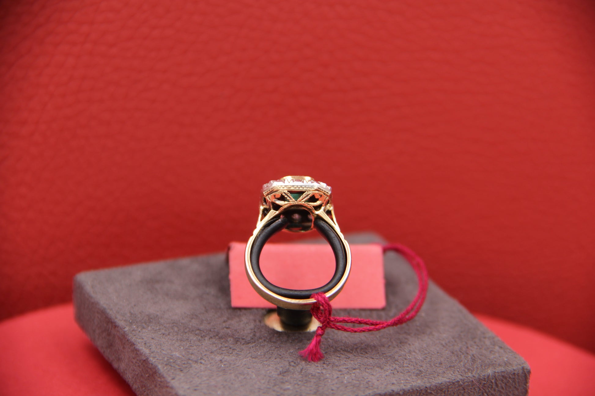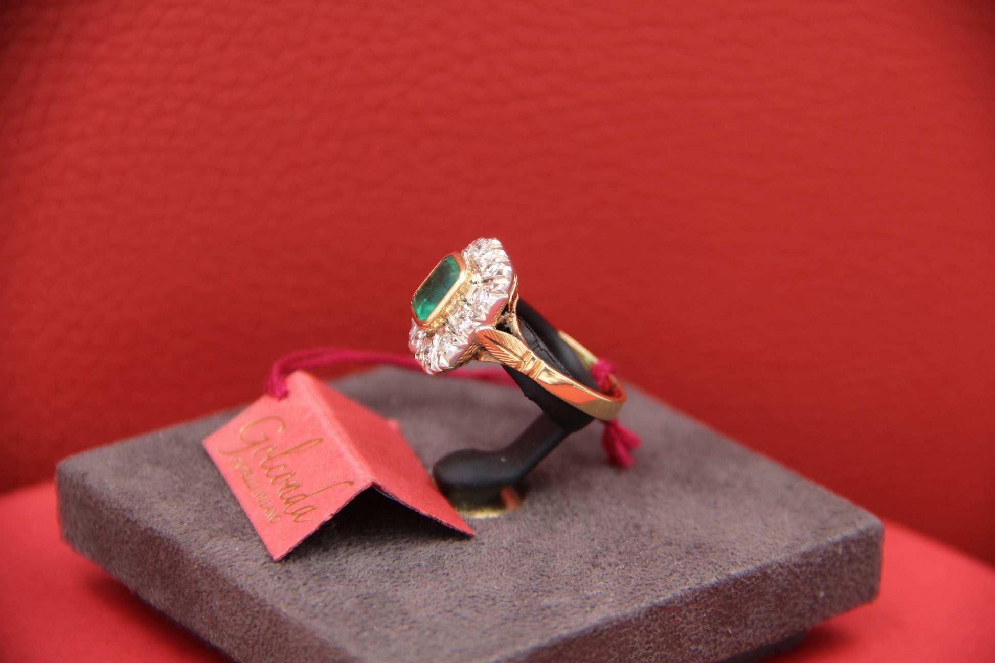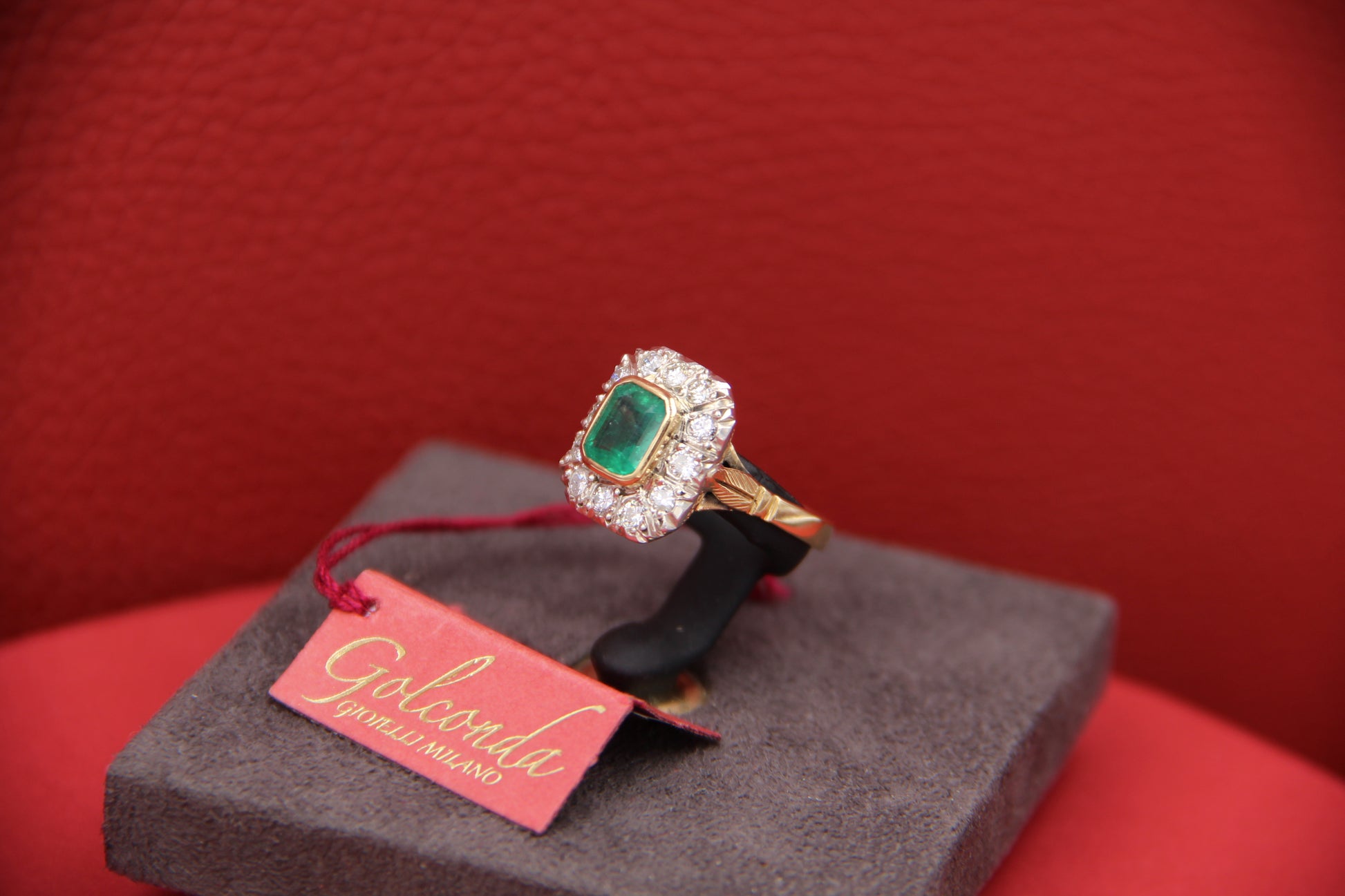 Vintage 18k gold ring, 4.70g, with a 1.10ct emerald-cut emerald and 0.50ct brilliant-cut diamonds.