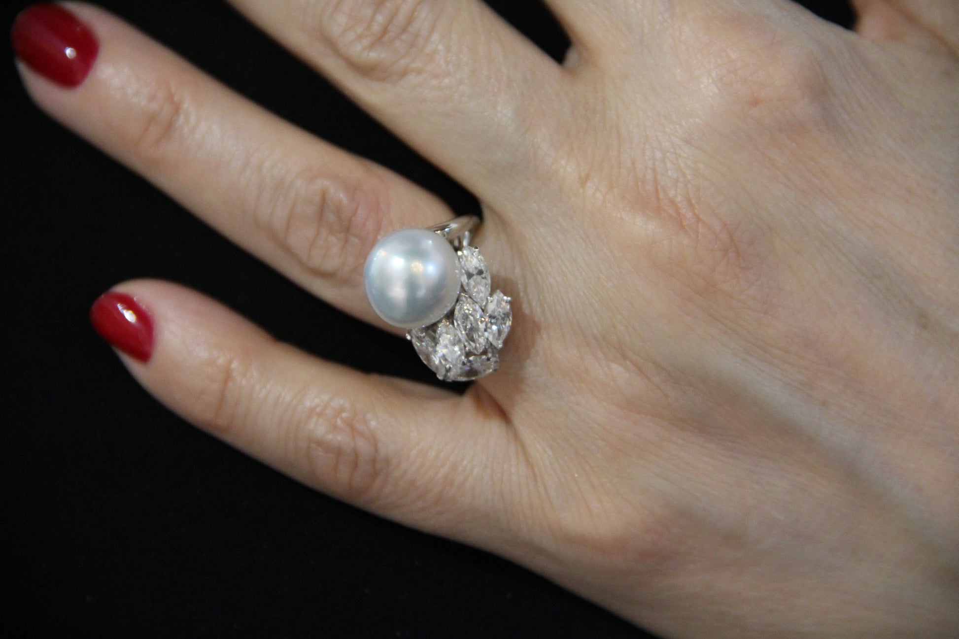 Australian pearl and diamond navette ring