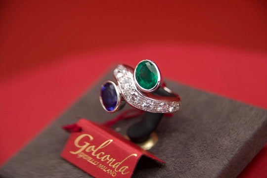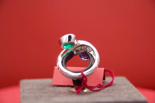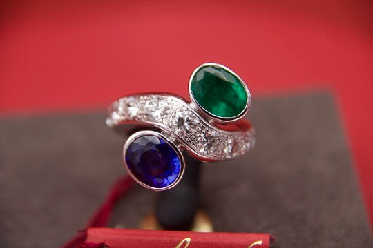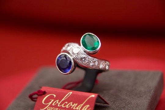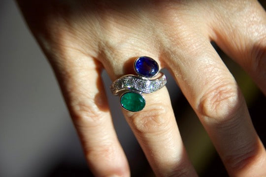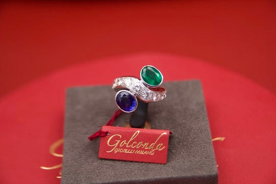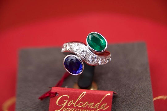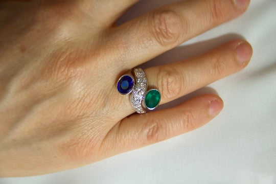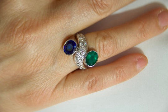 Toi moi ring with sapphire and emerald