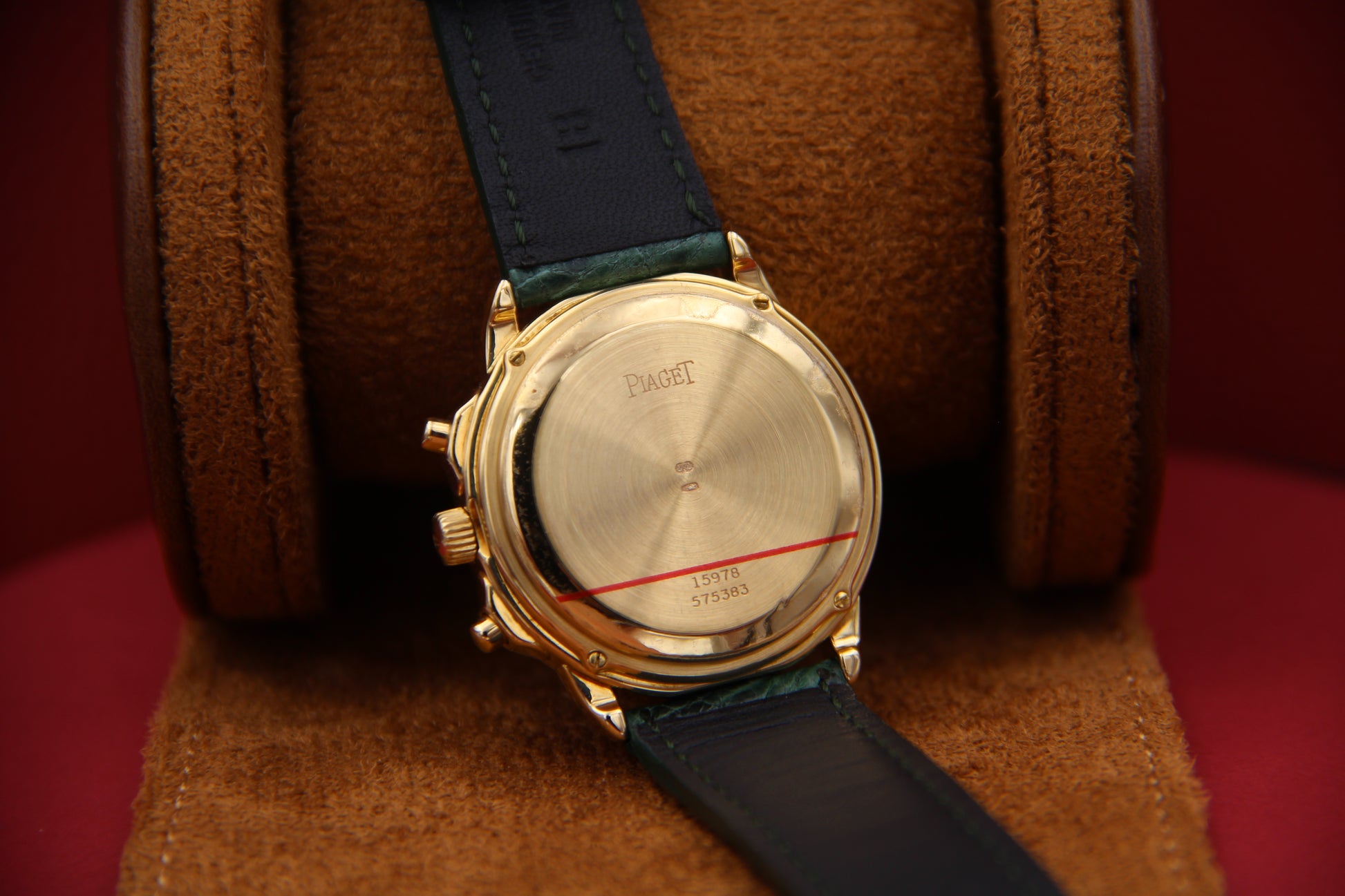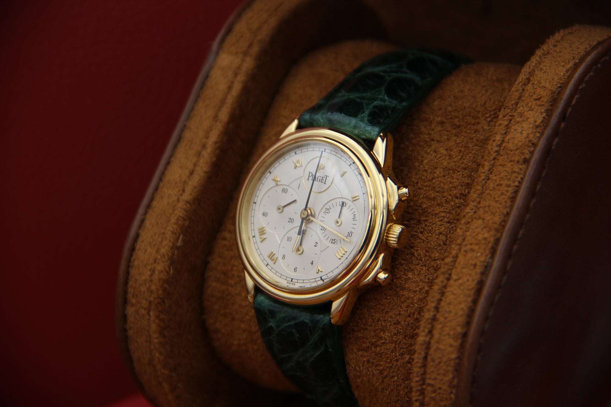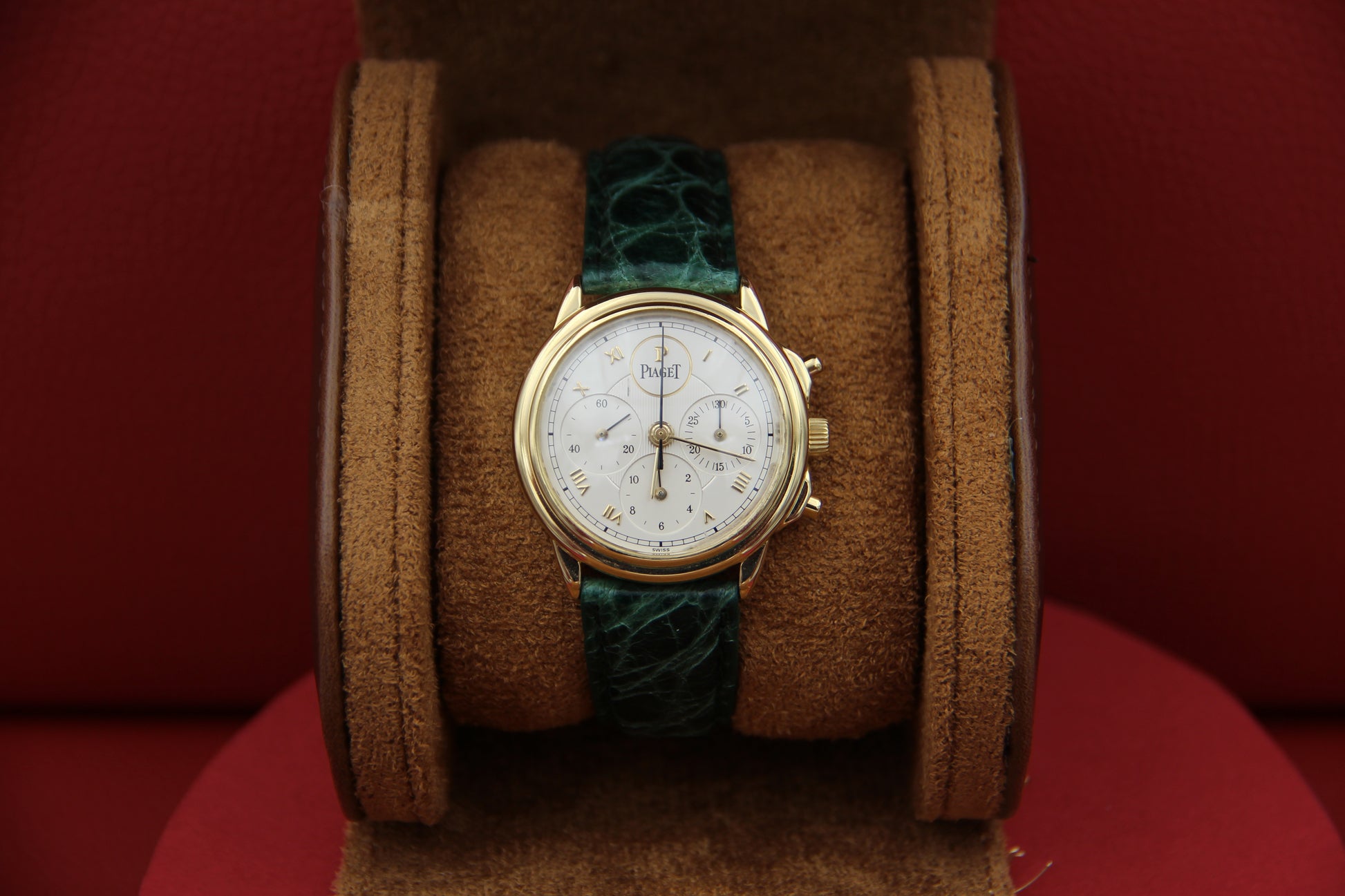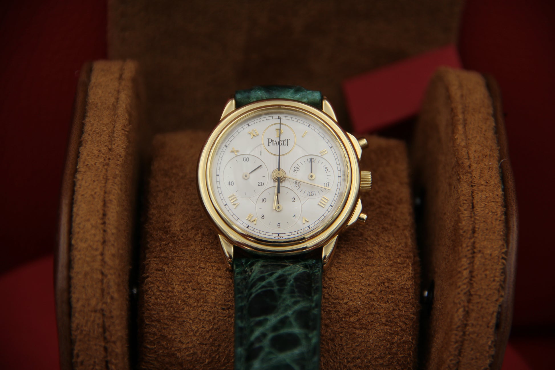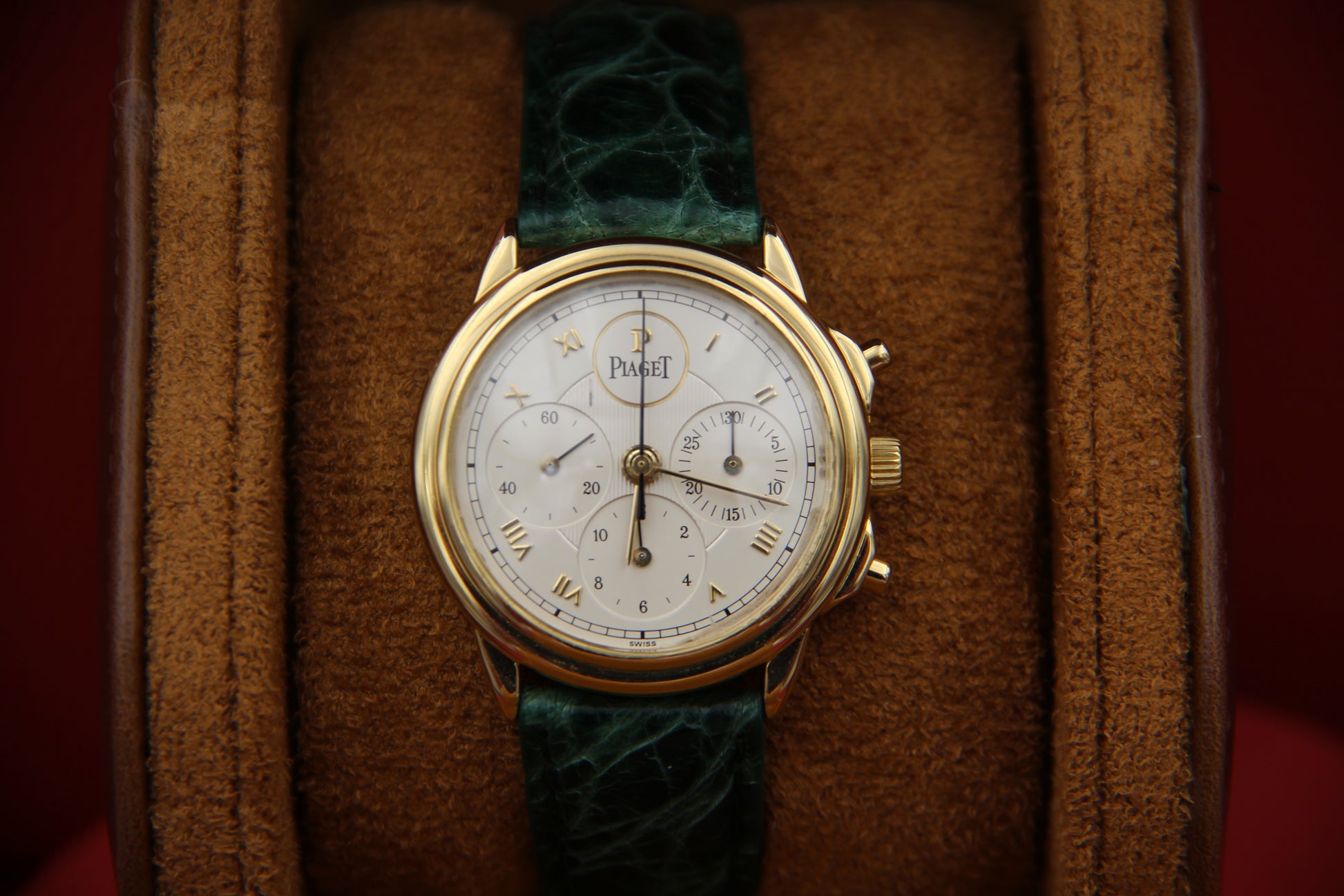 Vintage “Piaget” watch in 18k gold, automatic and chronograph mechanism with new non-original strap, completely overhauled