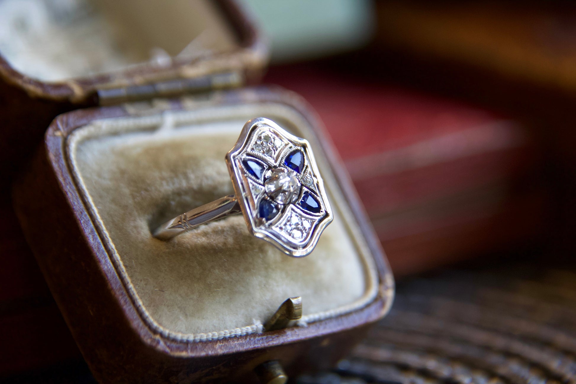 Anello con zaffiri e diamanti Anni 20'