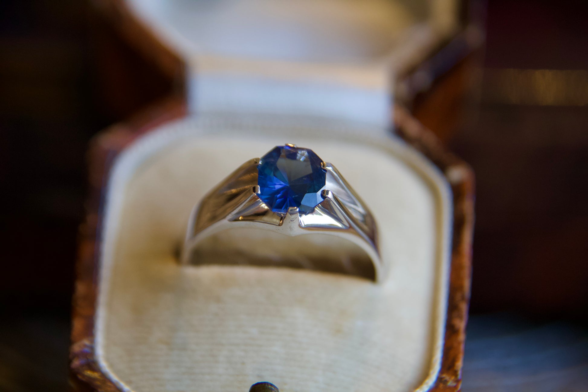 Questo anello è l'incarnazione del nostro spirito: un gioiello vintage in oro bianco che abbiamo voluto riportare al suo massimo splendore. Il cuore del gioiello è lo zaffiro, che abbiamo ritagliato personalmente da una gemma ovale preesistente (su IG troverete il video completo). Abbiamo scelto un insolito e modernissimo taglio ottagonale modificato, mettendo in mostra una brillantezza unica e inaspettata.