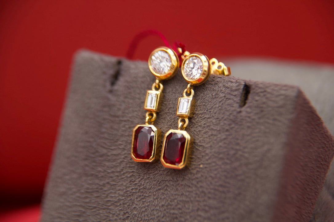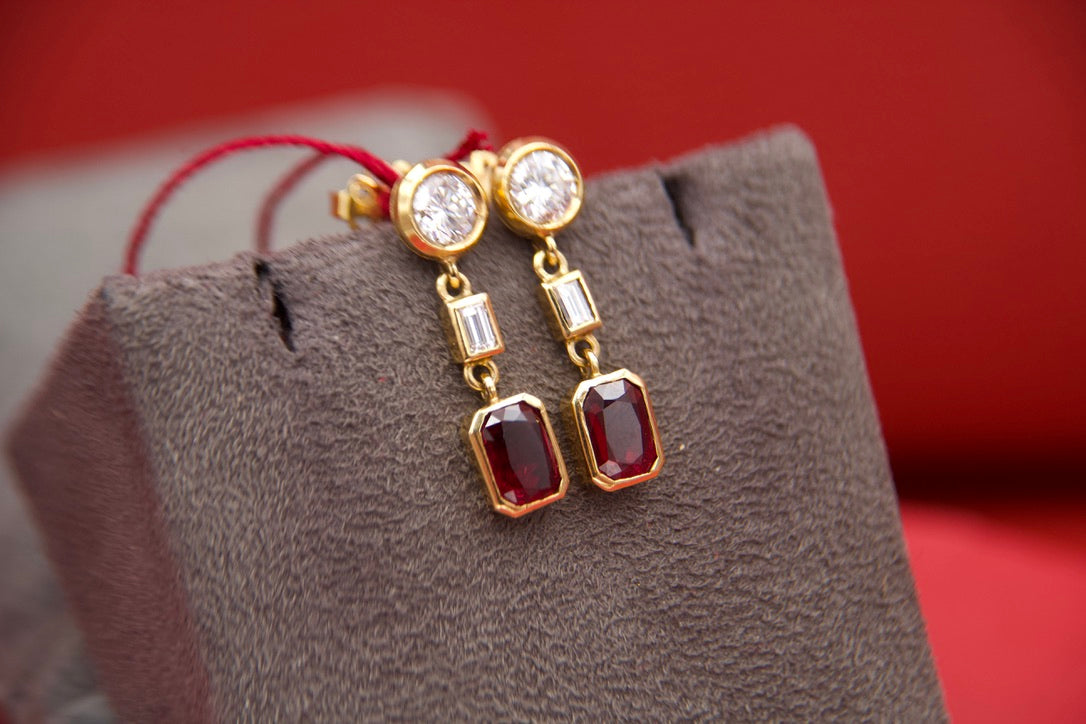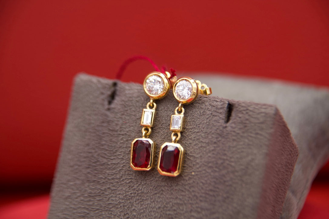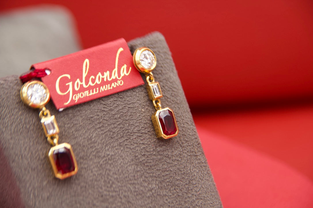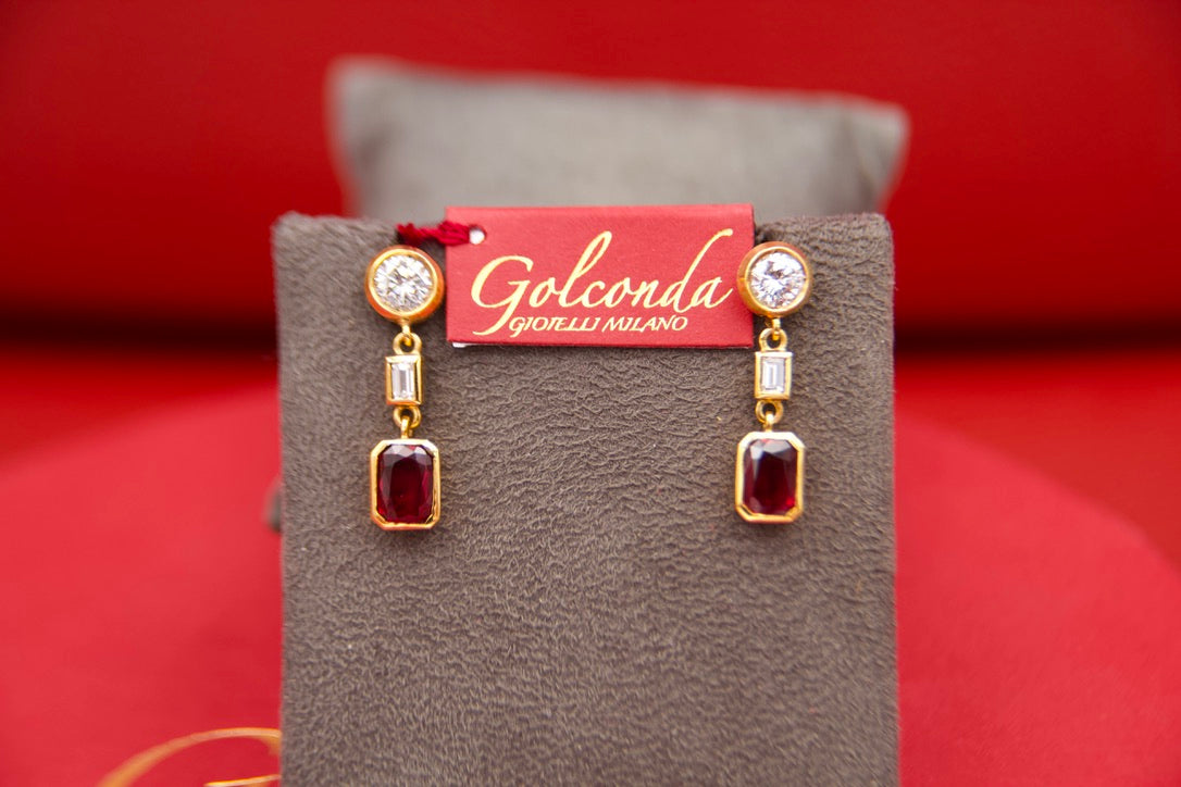 Orecchini pendenti con diamanti e rubini