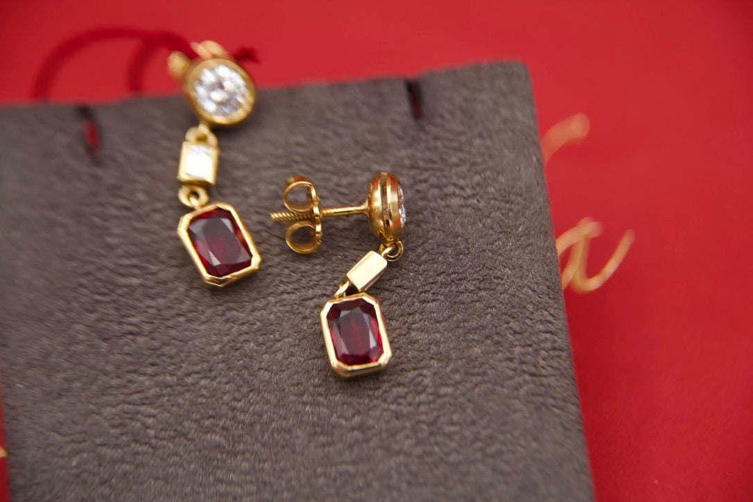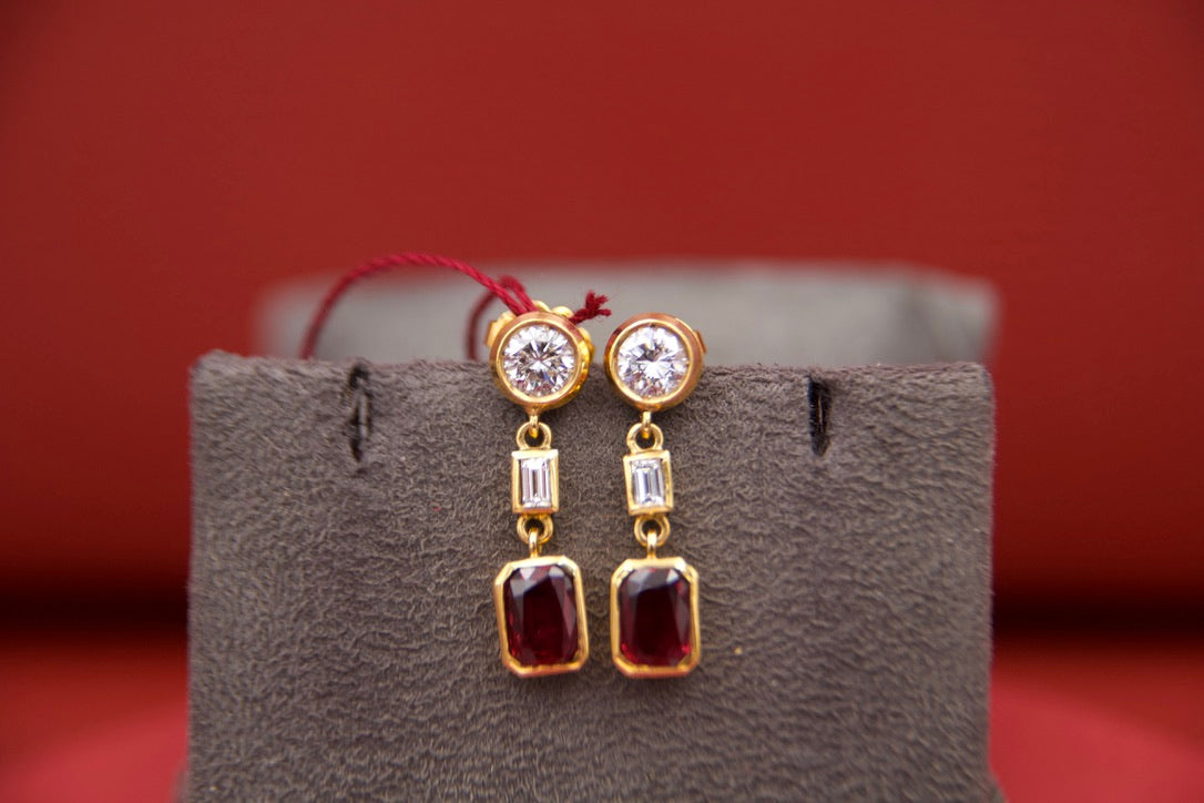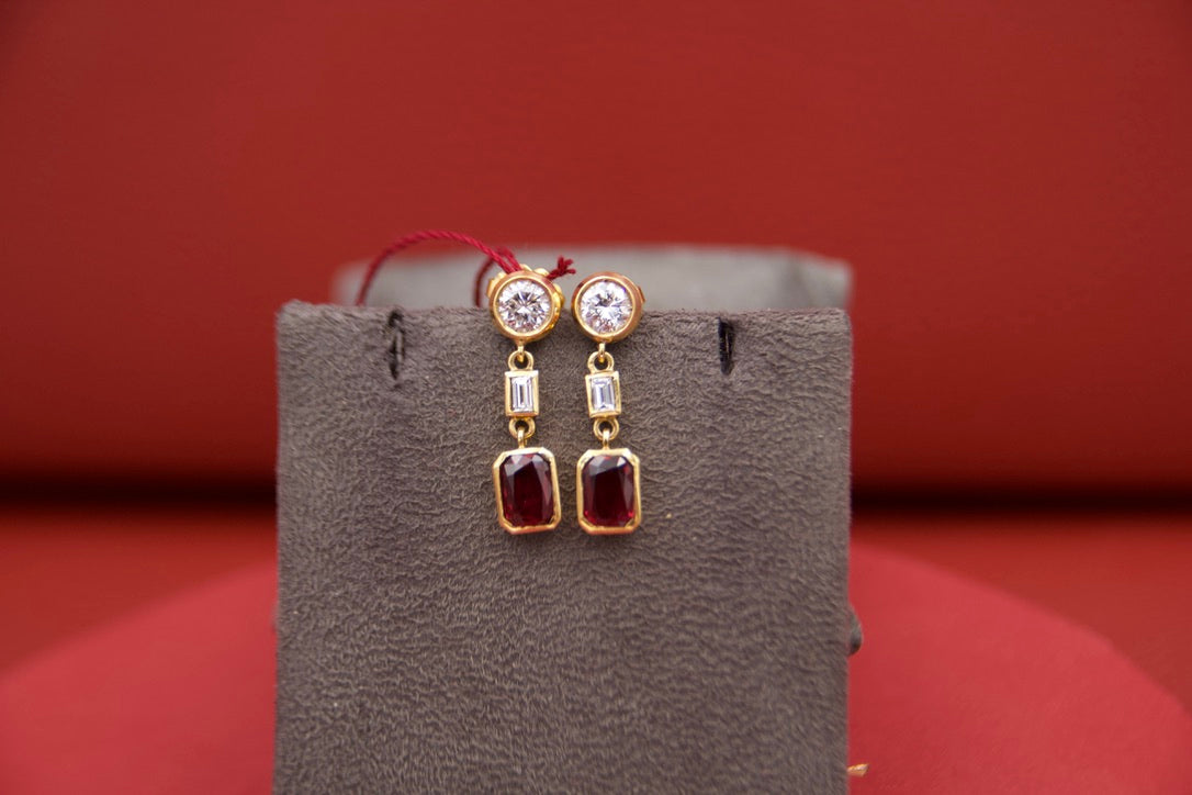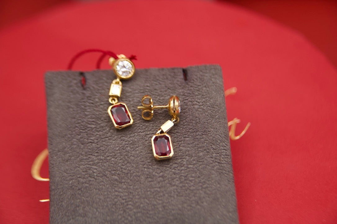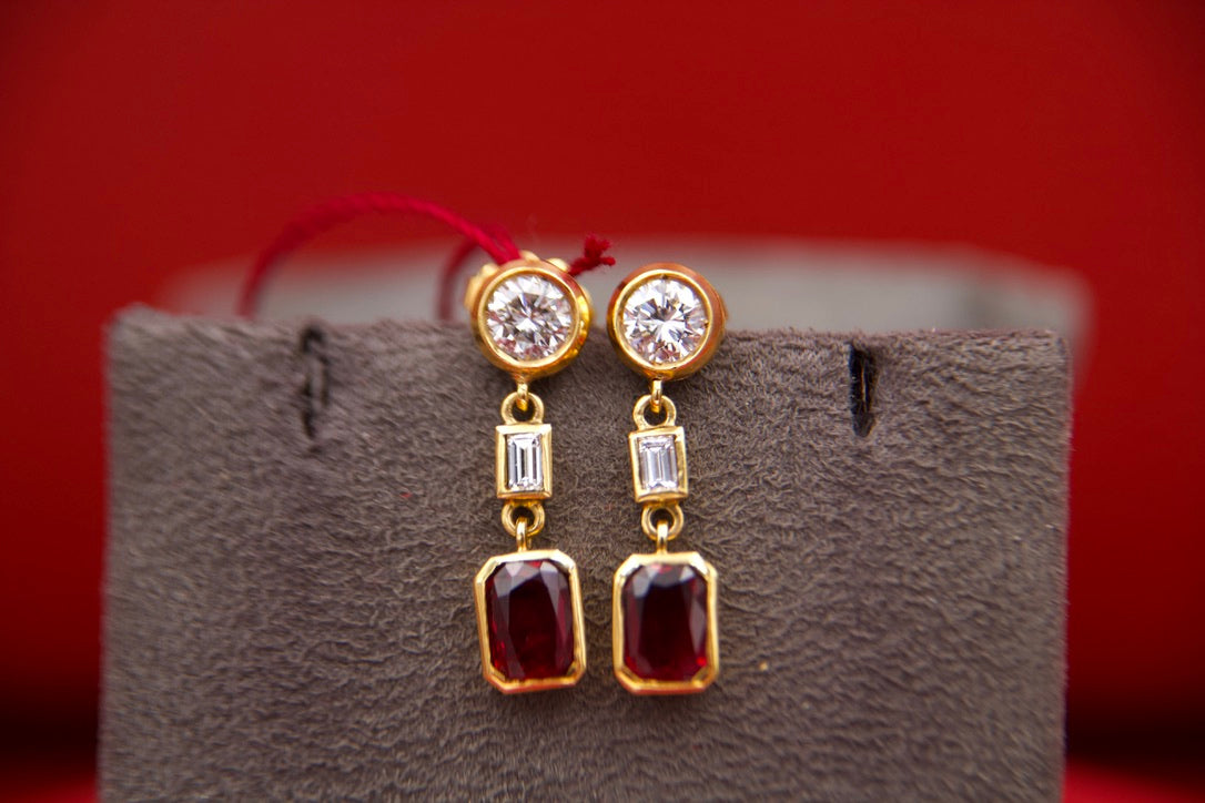 Orecchini pendenti con diamanti e rubini
