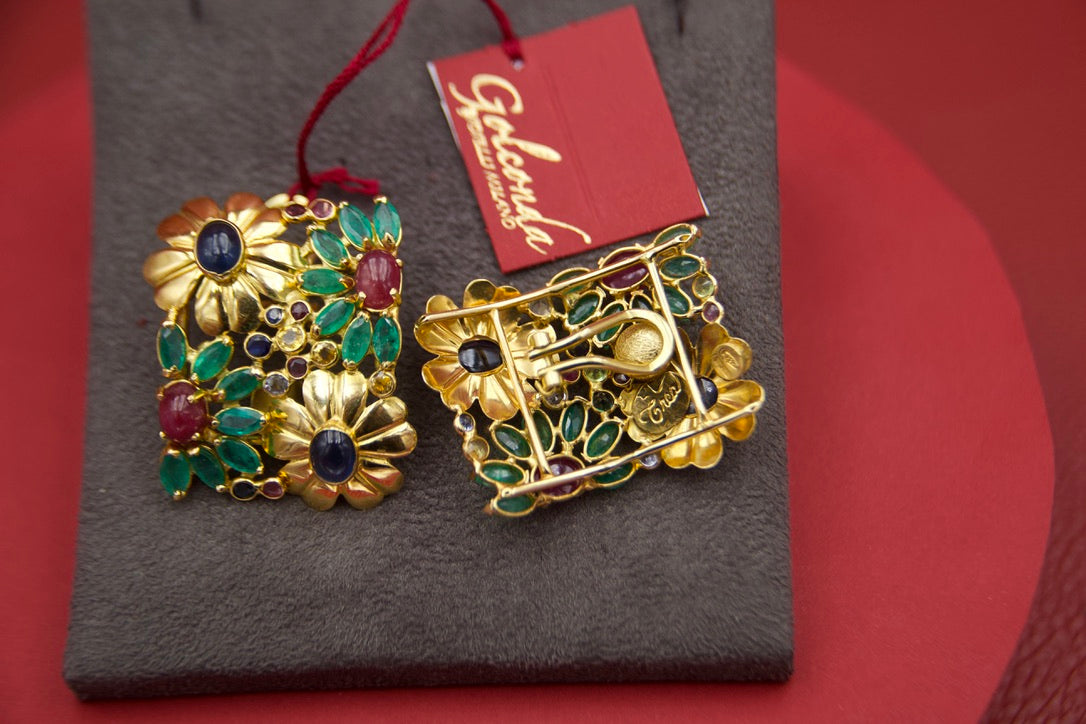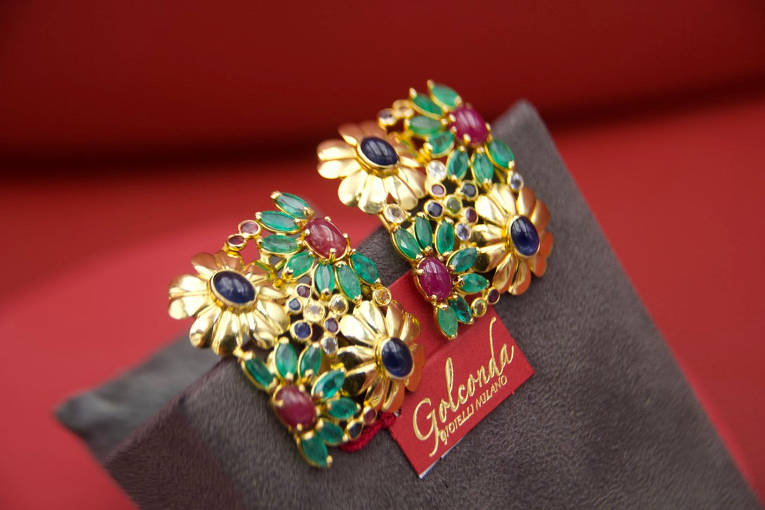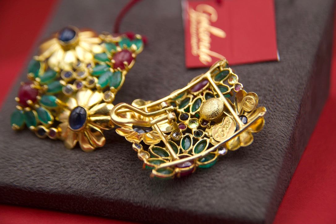 La caratteristica "Tutti Frutti" è un magnifico mosaico di gemme naturali: zaffiri, smeraldi e rubini in tagli cabochon e fantasia. Il risultato è un'esplosione di colore e lusso non convenzionale.