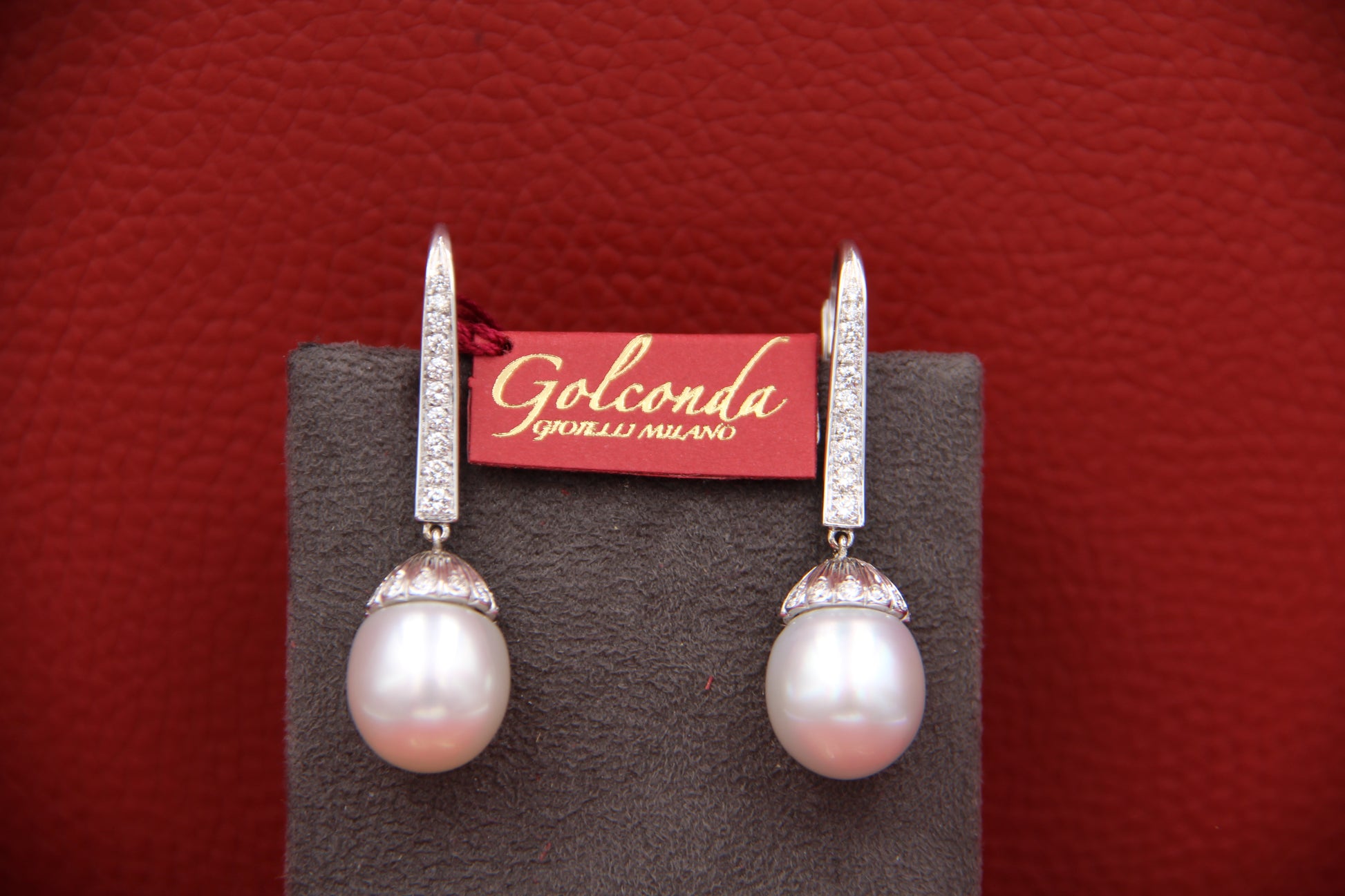 Orecchini in oro 18k con diamanti naturali taglio brillante e perle australiane