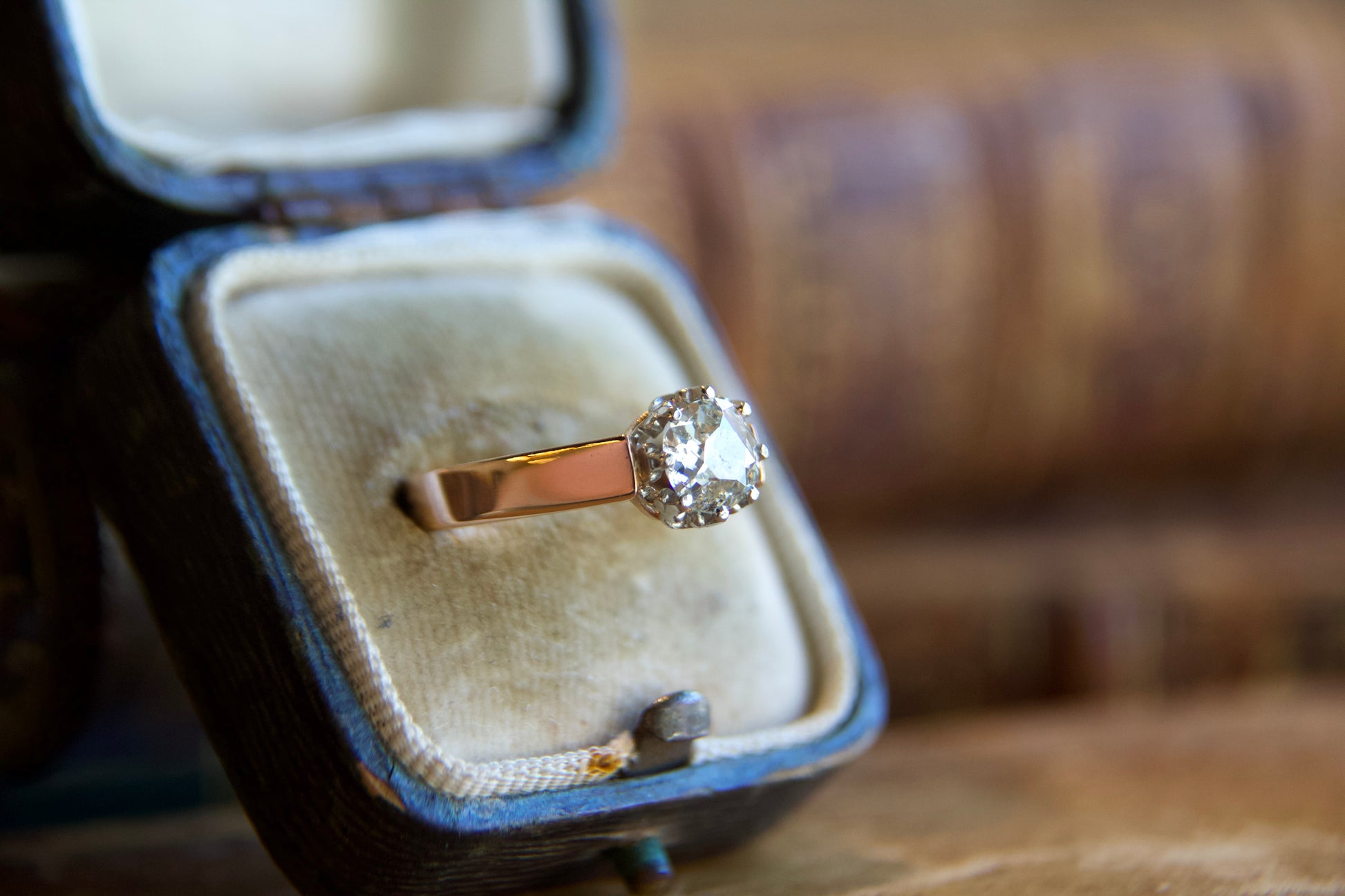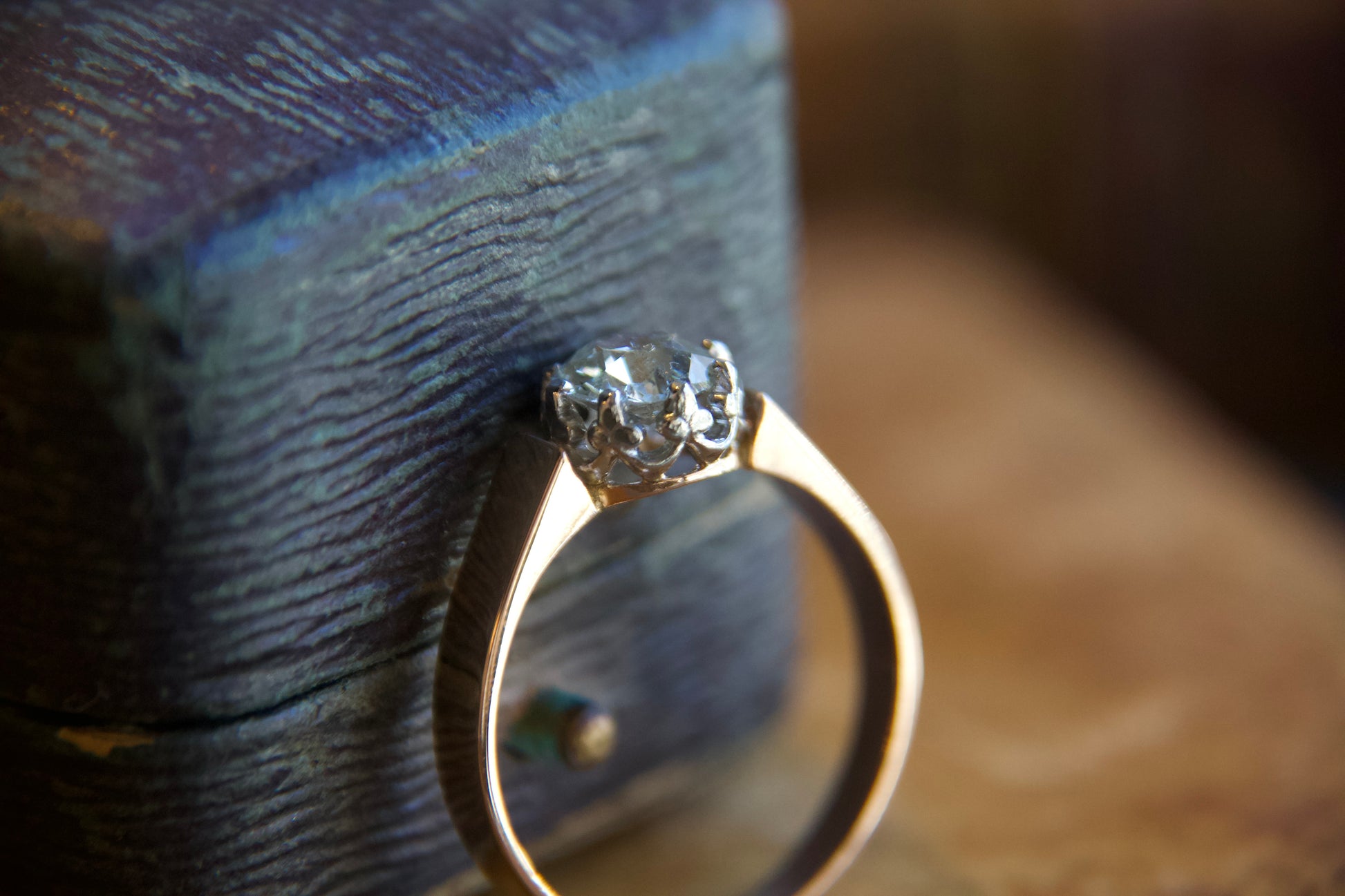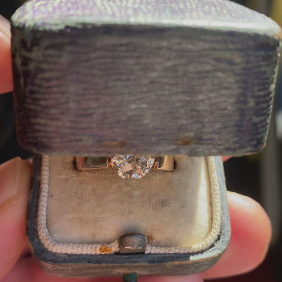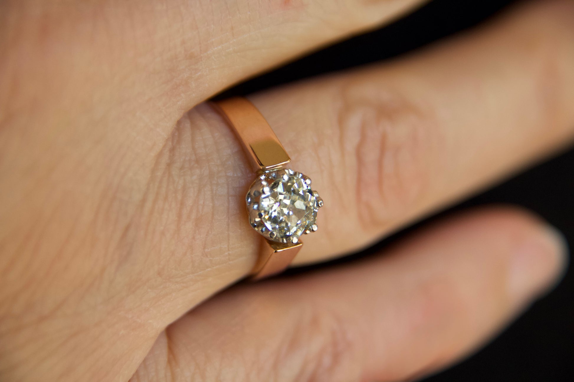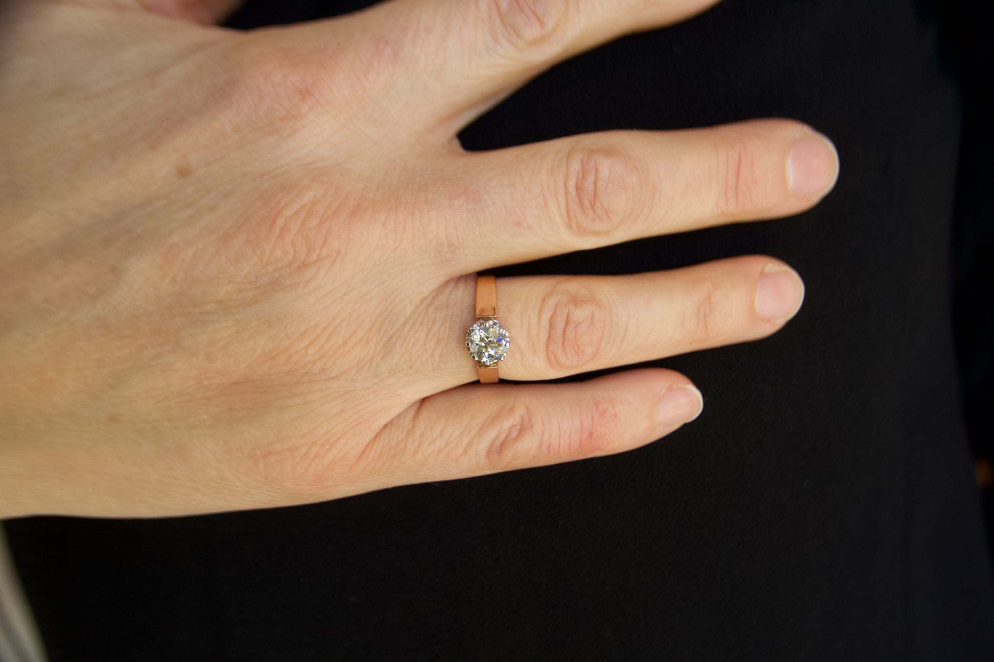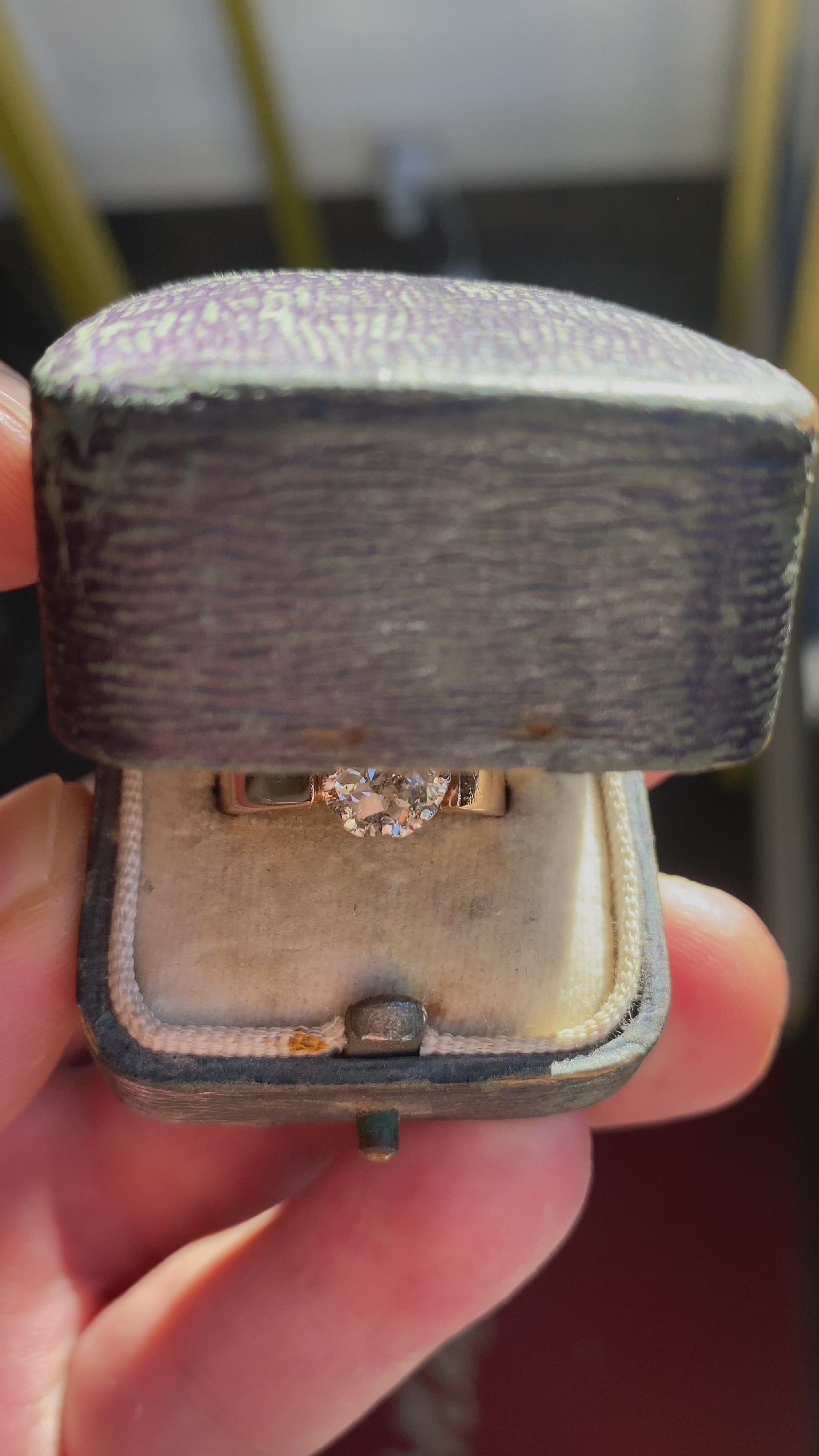 Questo straordinario solitario a cavallo tra fine '800 e primi '900 è un inno alla luce autentica e alla materia. La montatura in oro 18kt e platino punta tutto su un design solido e scultoreo, culminando in un castone a "corona" che solleva e celebra un diamante taglio antico da 0,92ct. A differenza dei tagli moderni, questa gemma vibra di una luce profonda e magnetica, figlia di una sfaccettatura eseguita interamente a mano che rende ogni riflesso unico e irripetibile. L'incontro tra il calore dell'oro e la fredda eleganza del platino crea un contrasto nobile, perfetto per chi cerca un simbolo di eternità lontano dall'omologazione contemporanea.